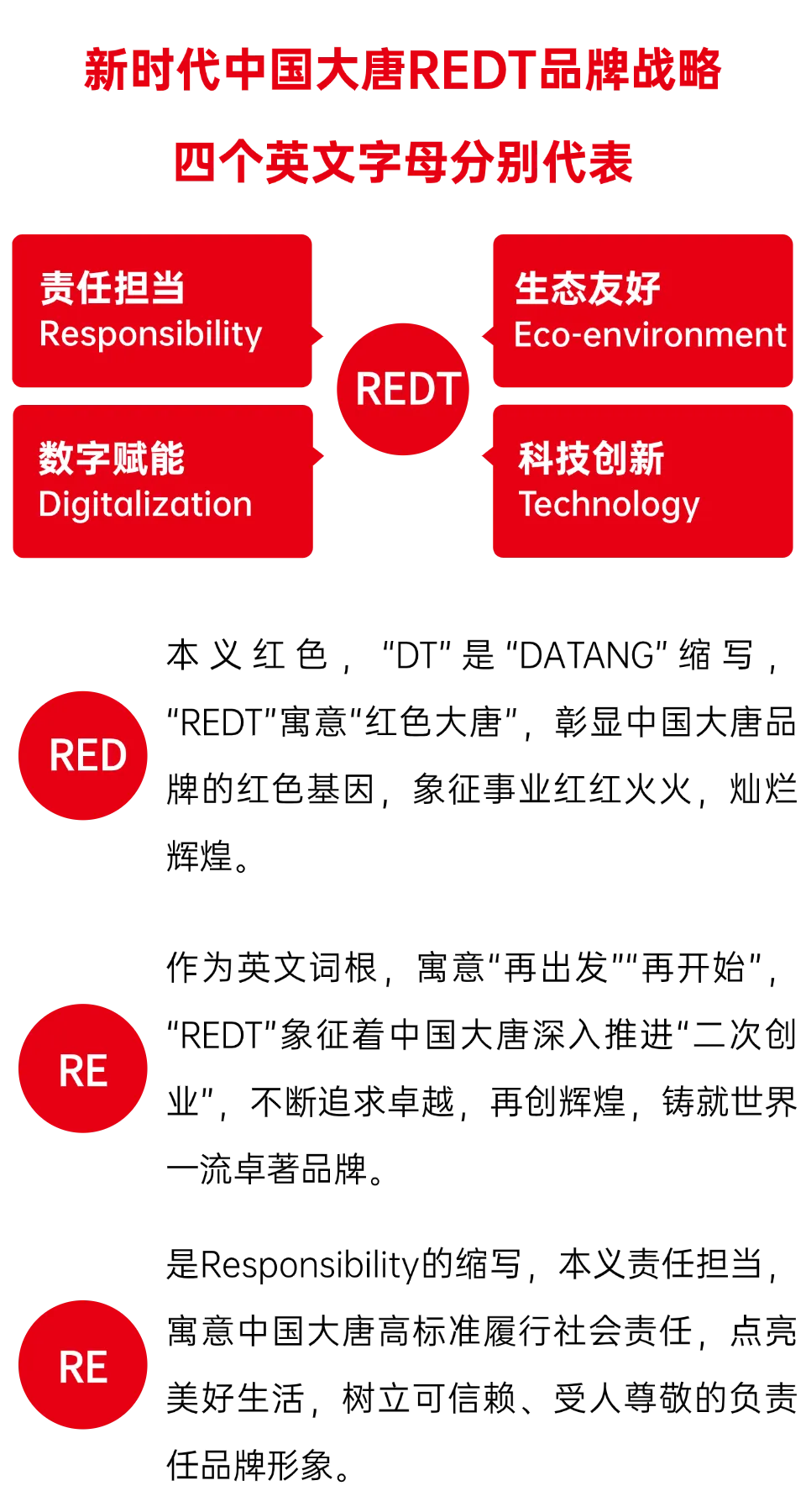 本網(wǎng)訊??1月7日,中國(guó)大唐集團(tuán)有限公司在京舉辦“能動(dòng)世界 共享美好”品牌建設(shè)推進(jìn)會(huì)暨REDT品牌戰(zhàn)略發(fā)布會(huì),正式向社會(huì)發(fā)布REDT品牌基因、戰(zhàn)略目標(biāo)、理念體系、品牌形象等,明確了“世界一流能源供應(yīng)商”品牌定位,“能動(dòng)世界、共享美好”品牌口號(hào),“卓越、創(chuàng)新、責(zé)任、溫暖”品牌個(gè)性,“惟實(shí)惟新、共創(chuàng)共享”品牌價(jià)值主張。