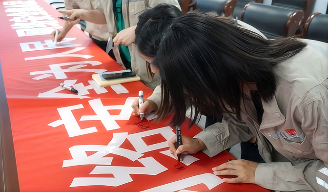 會議室里,大家在主題承諾儀式中鄭重簽字;信息主管結(jié)合真實案例,生動講解網(wǎng)絡(luò)安全形勢、事件處置及個人信息防護要點,職工們聽得專注,積極互動,在深入淺出的教學(xué)中提升防護技能。