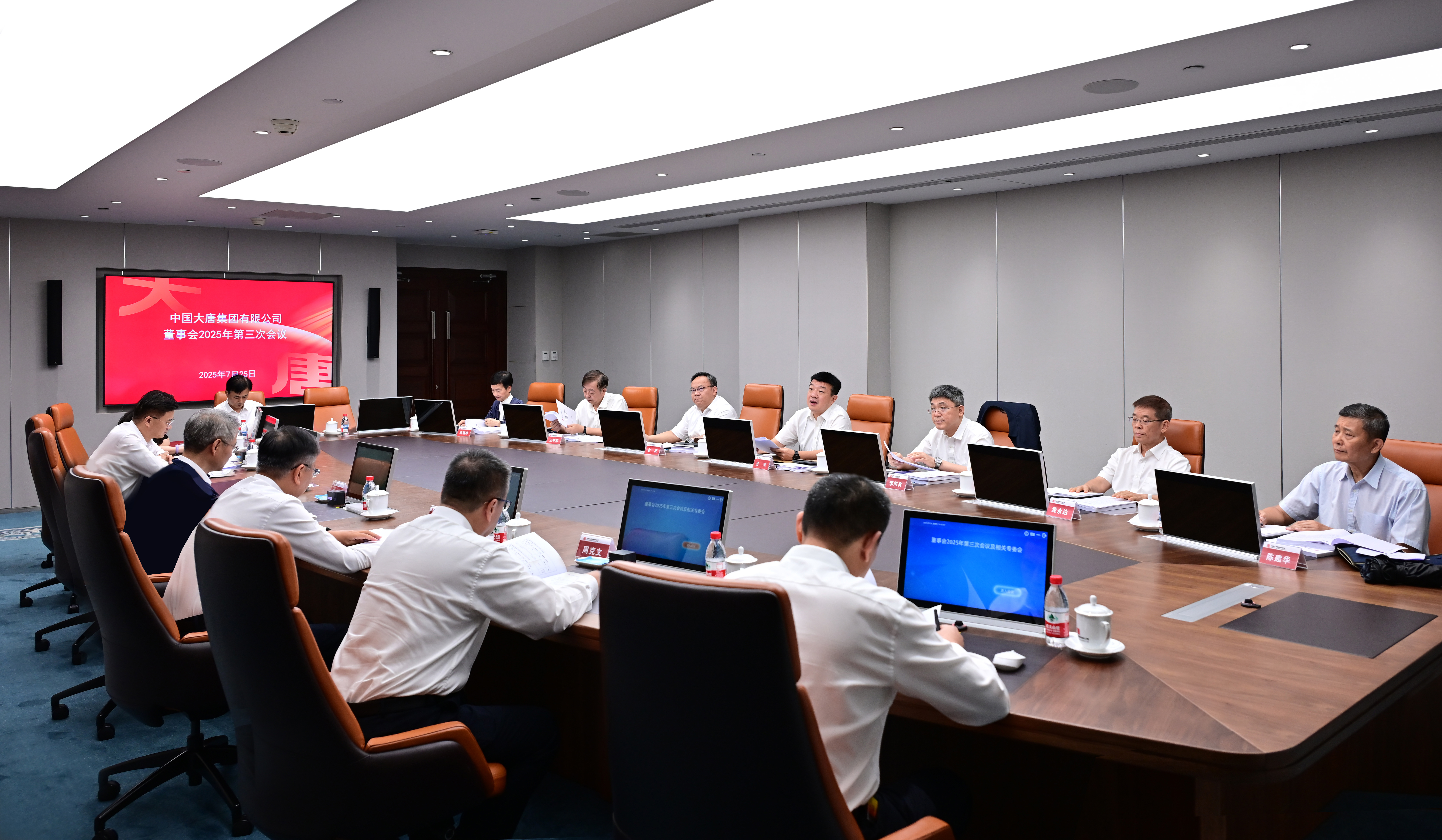 本網(wǎng)訊 7月25日,中國大唐集團(tuán)有限公司召開董事會2025年第三次會議。集團(tuán)公司董事長、黨組書記呂軍主持會議并講話,董事、總經(jīng)理、黨組副書記李向良,董事、黨組副書記余波,外部董事黃永達(dá)、王守東、陳建華、段湘暉參加會議。