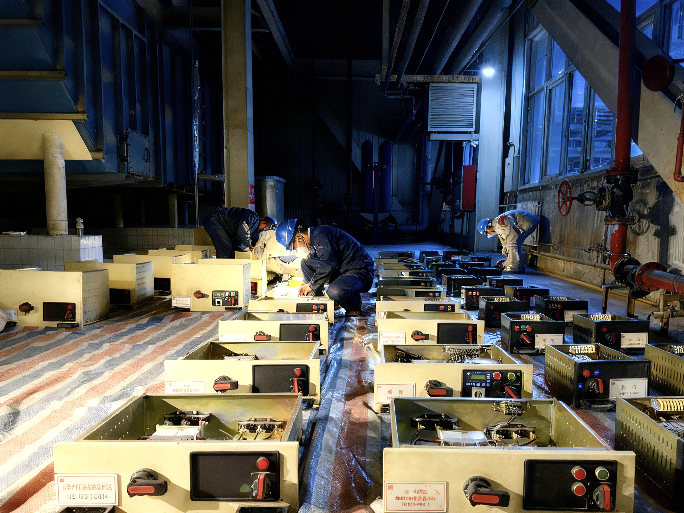 打開MCC柜門,接觸器、繼電器、斷路器與密集的二次線路呈現眼前。檢修人員手持工具與電筒,如外科醫生般專注細致:緊固每一處端子,清除每一粒積灰,測試每一個元件。現場唯有工具輕響與沉穩的呼吸聲,映襯著他們專注的身影。