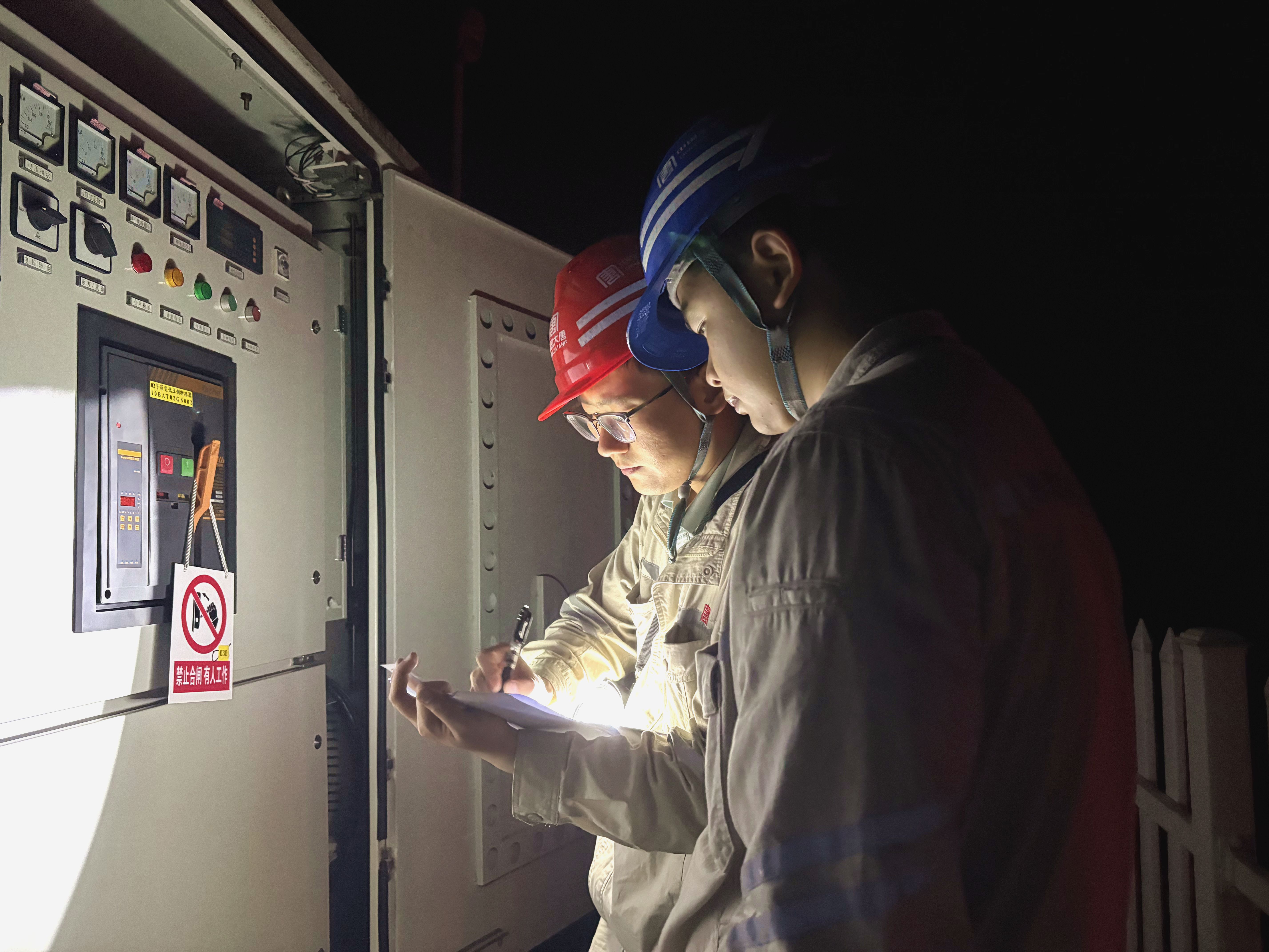 線上線下分工協(xié)作,指令與執(zhí)行同頻。23時30分,升壓站的燈光刺破雨幕,成為黑夜里最亮的坐標。