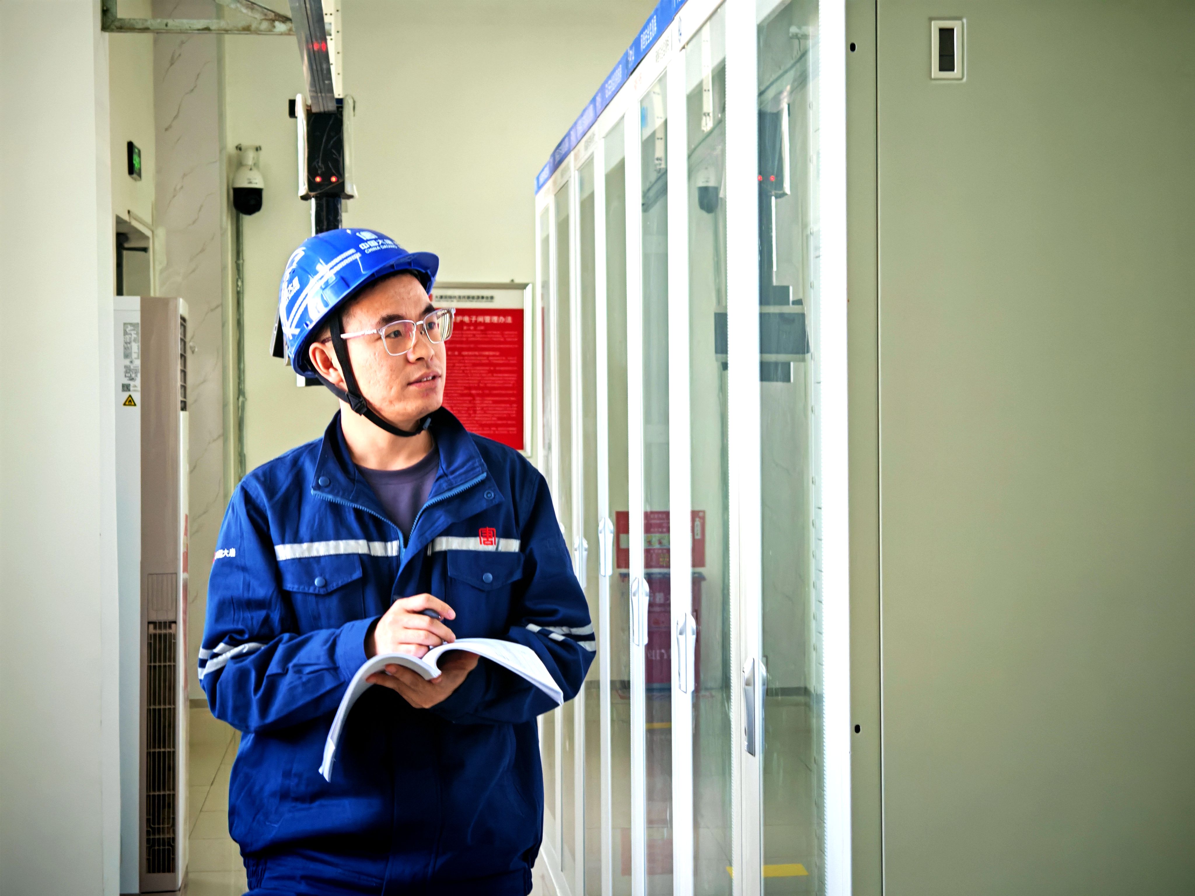 從火電控制室的儀表盤前,到風(fēng)場百米高空的風(fēng)機(jī)控制面板旁,他憑借勇氣和專業(yè)熱愛,成功實(shí)現(xiàn)從傳統(tǒng)火電到新能源領(lǐng)域的“跨界轉(zhuǎn)身”。他埋頭苦干、刻苦鉆研,2025年先后獲得“大唐國際技術(shù)能手”“集團(tuán)公司技術(shù)能手”以及“電力行業(yè)技術(shù)能手”稱號,從“初學(xué)者”蛻變?yōu)楠?dú)當(dāng)一面的“技能骨干”。他就是托克托發(fā)電公司新能源事業(yè)部運(yùn)維中心技術(shù)員——謝磊。
