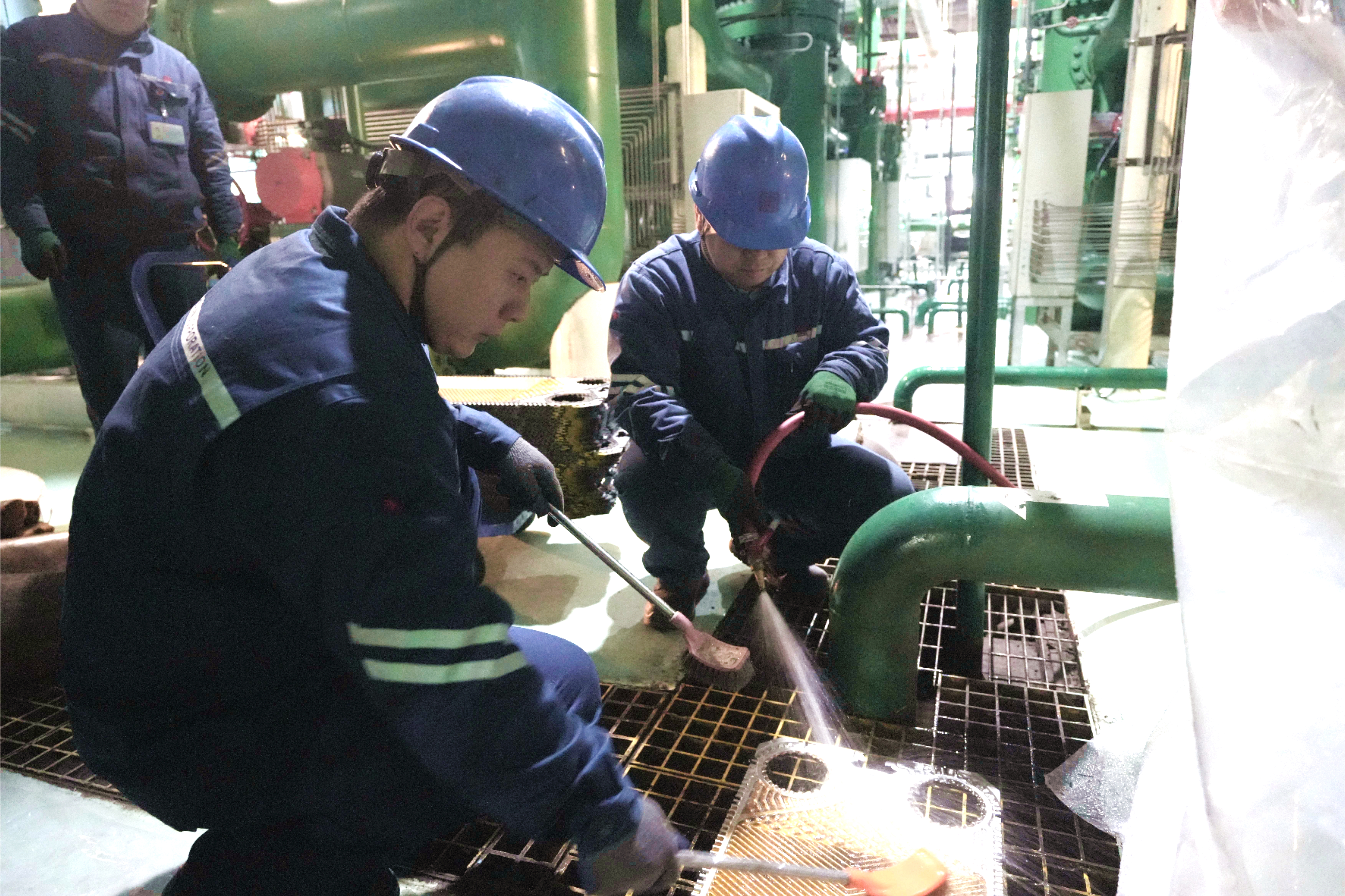 檢修前兩天一切按照計劃工作進行,到了第三天,問題就來了。“芯包卡澀嚴重,無法直接拉出。”檢修技術員秦玉海的聲音從設備的另一側傳來。薛凱強快步走過去,蹲下身,手電筒的光束照在芯包與殼體的結合面上——一層厚厚的銹蝕像頑固的枷鎖,死死咬著緊密無間。秦玉海已經嘗試銅棒敲擊和液壓千斤頂芯包,甚至小心翼翼地用撬棍試探,可芯包紋絲不動。