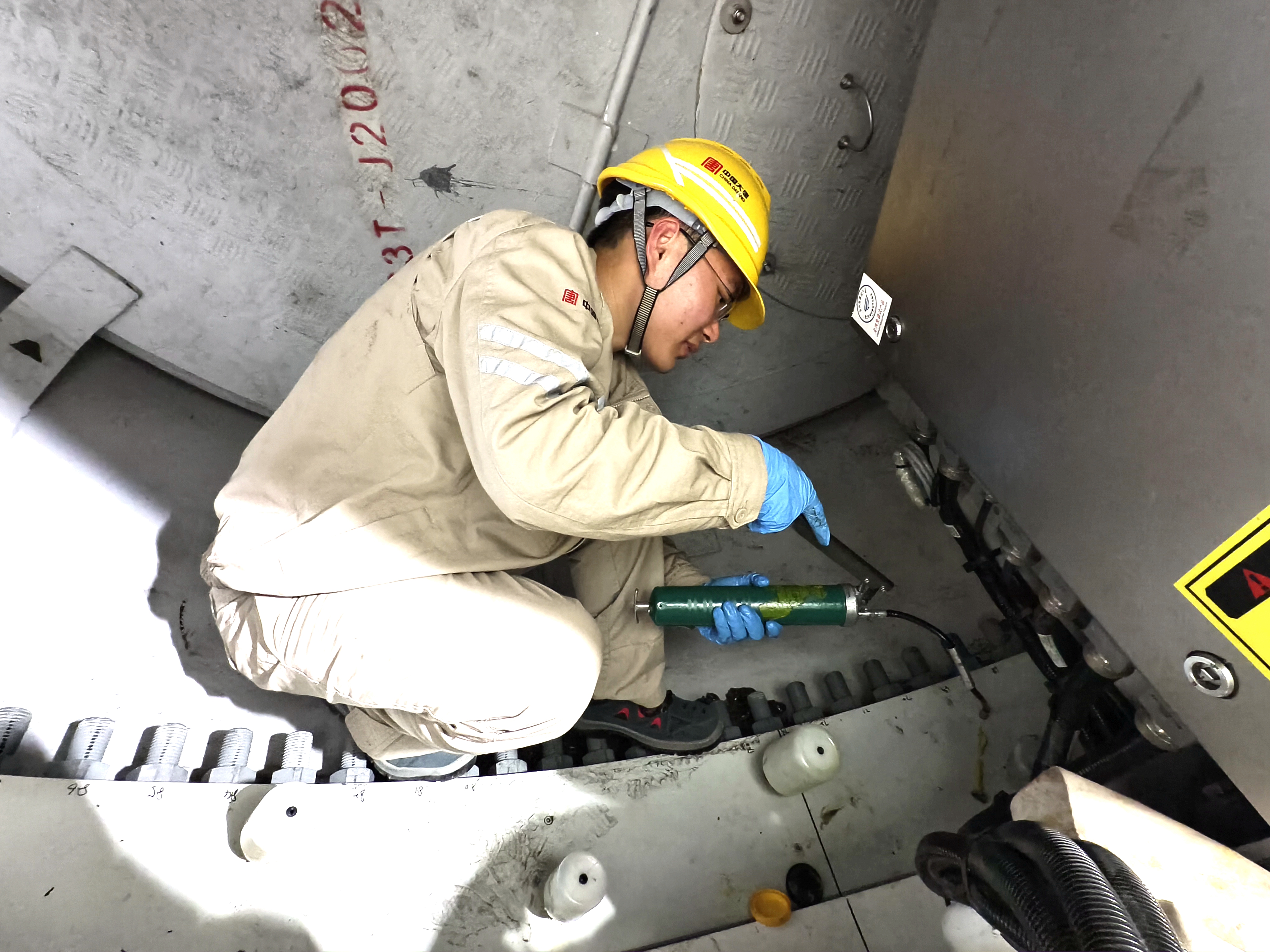 在這螺螄殼般的空間里,站直身體是奢望,彎腰弓背才是常態(tài)。每一次精準(zhǔn)的按壓,每一次黃油的注入,看似單調(diào)重復(fù),實(shí)則暗藏玄機(jī)與風(fēng)險(xiǎn)。風(fēng)機(jī)半年定檢,考驗(yàn)的不僅是指尖上的“繡花功夫”,更是鋼鐵般的意志與挑戰(zhàn)極限的勇氣。