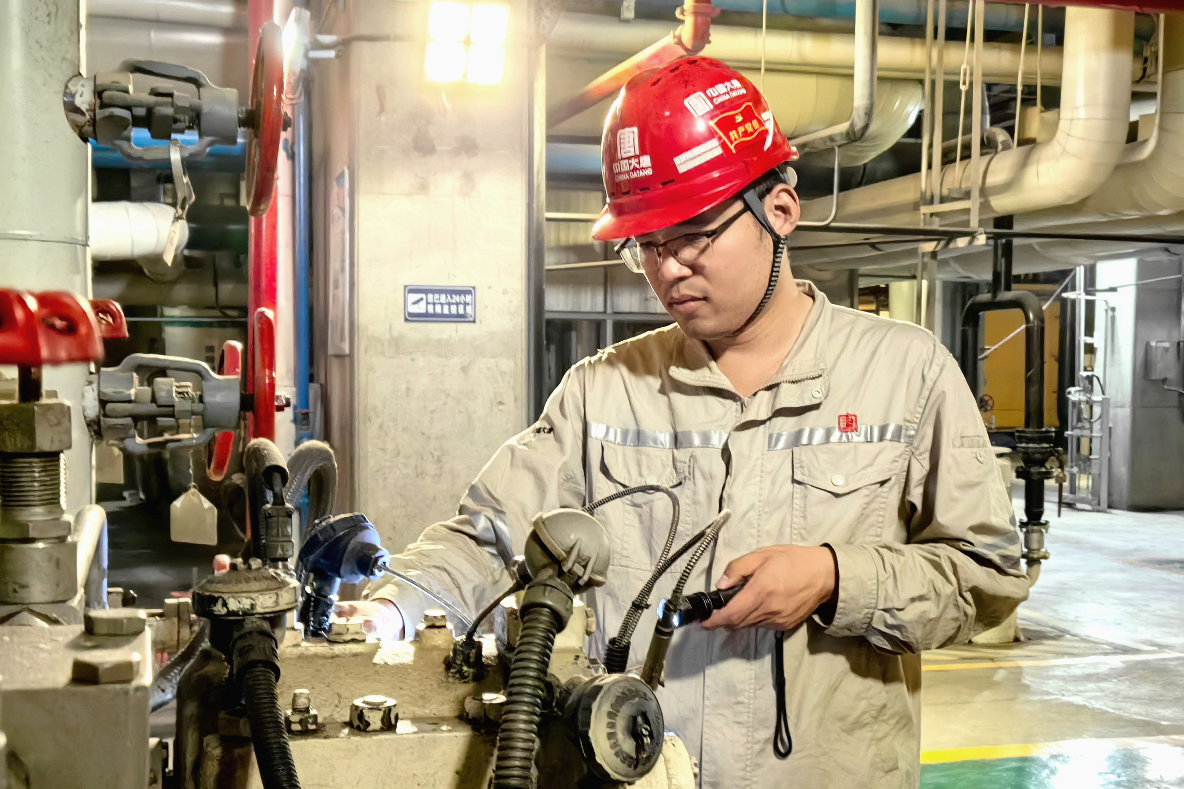 凌晨3點(diǎn),廠區(qū)上空繁星點(diǎn)點(diǎn),生活水供水壓力出現(xiàn)波動(dòng)。經(jīng)驗(yàn)豐富的汽機(jī)點(diǎn)檢員王洪軍憑借敏銳的參數(shù)警覺,抓起手電筒沖向現(xiàn)場。憑借對設(shè)備的熟悉,他迅速鎖定異常區(qū)域,結(jié)合泵電流的波動(dòng),精準(zhǔn)判斷:“是管道泄漏。必須立即處置。”他抓起對講機(jī),聲音斬釘截鐵:“秦工,馬上組織現(xiàn)場作業(yè),吊車、焊工、維修組即刻到位,備齊管道、螺栓、墊片。”年輕的汽機(jī)點(diǎn)檢長秦建亮聞?dòng)嵓柴Y而來,一邊奔赴現(xiàn)場,一邊調(diào)閱電子檔案。“王師傅,規(guī)格無誤,備件已齊備。”當(dāng)維護(hù)人員火速集結(jié)時(shí),所需備件也已同步送達(dá)現(xiàn)場。