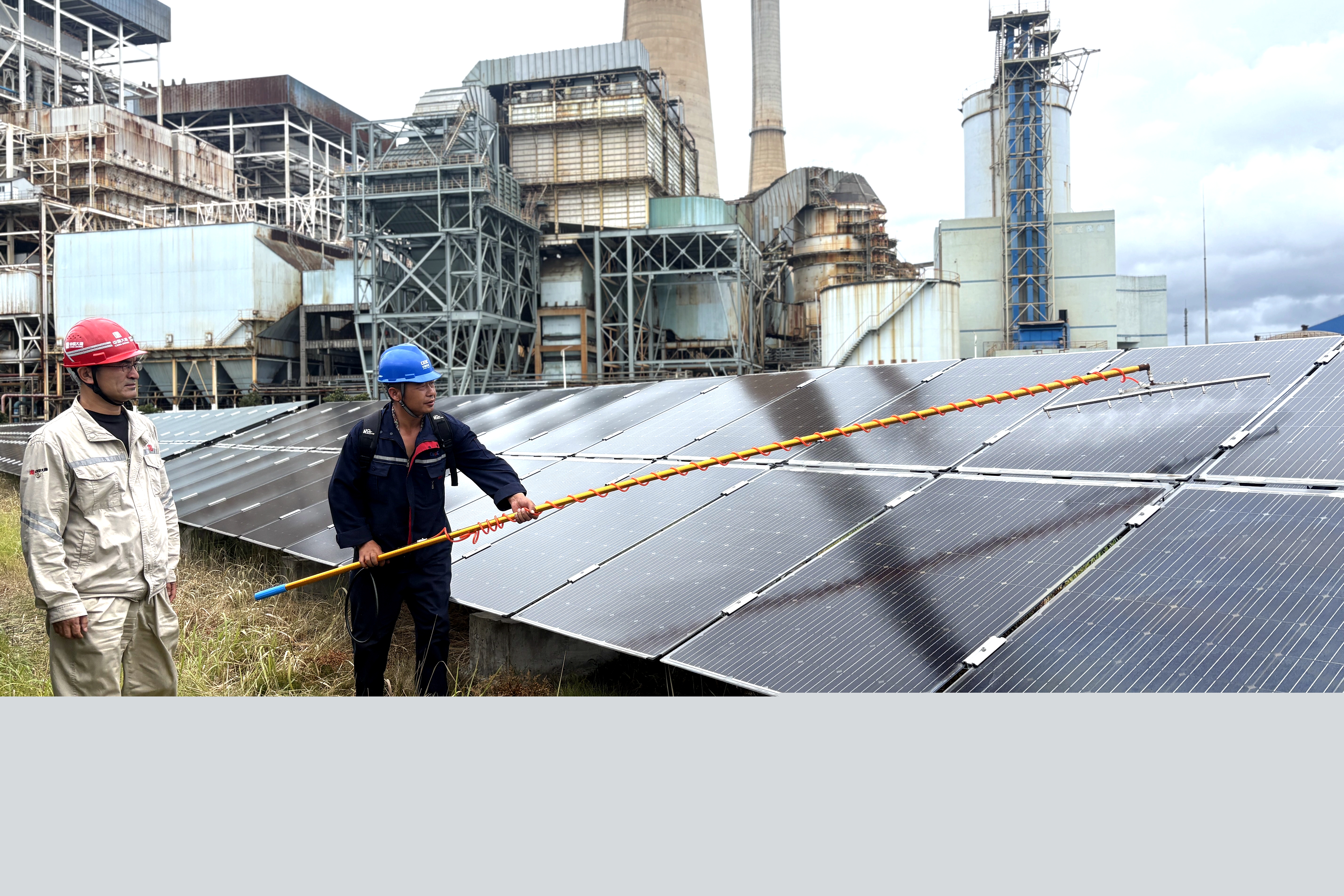 浙江新能源公司烏沙山廠區光伏電站位于火電廠生產區域二期場地,這里常年彌漫著白色蒸汽。蒸汽遇冷凝結后,會形成“石膏雨”,在光伏板表面結成水漬般的污垢。過去,該公司采用“人工+機器人”的清潔方式,往往剛清洗完畢,“石膏雨”便又隨之落下,最多三天,光伏板就會和未清洗時一樣。不僅如此,每次清潔時必須使用專用清洗劑,每塊光伏板要清洗5遍以上,但“細心呵護”后發電效率依舊不理想。“組件清洗就是治標不治本,不加以重點防治,清洗也是徒勞。”寧波區域運維中心主任曹魯心感慨道。