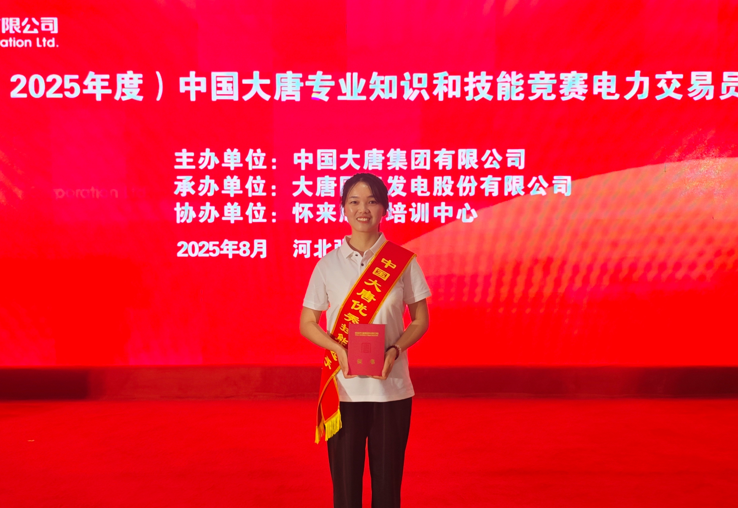 7年一線崗位的扎實歷練,賦予她對電力生產全鏈條的深刻理解。2025年5月,這份積淀終于迎來厚積薄發的契機,她被選拔參加陜西發電公司電力交易員培訓。憑借多年運行崗位磨礪出的系統性思維、嚴謹的數據敏感性和強大的抗壓能力,她在培訓中迅速脫穎而出。面對全新的市場規則、復雜的報價策略和瞬息萬變的信息,她將生產一線的經驗融入市場博弈的思考,展現出獨特的洞察力。優異的成績使她成功入選陜西代表隊,站上集團公司競賽的更高舞臺。在強者如林的激烈角逐中,她沉著冷靜,隨機應變,最終以優異成績獲得“中國大唐優秀技能選手”稱號。