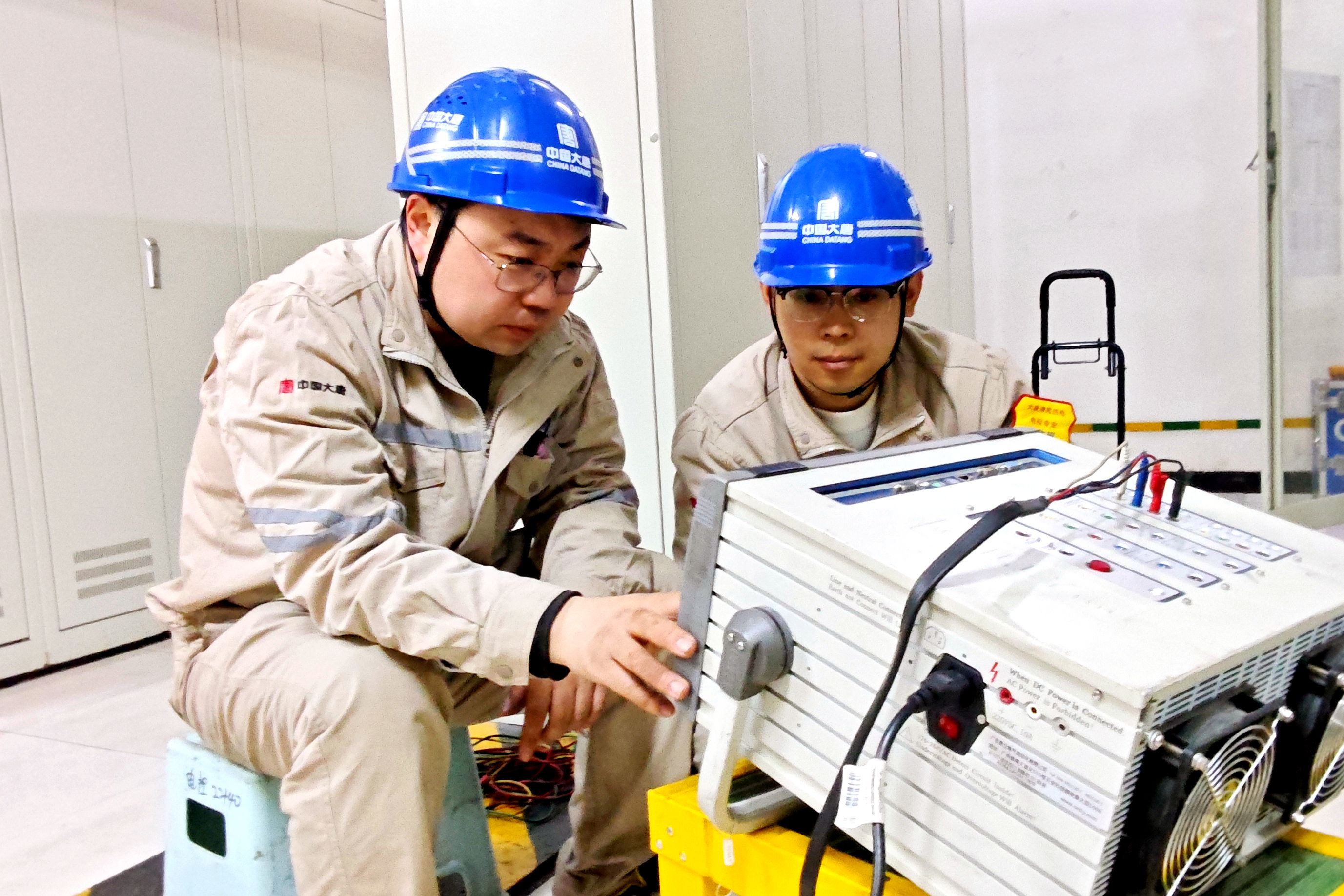 在發(fā)變組保護(hù)校驗(yàn)的現(xiàn)場(chǎng),隨著一聲清晰的指令,電控班長(zhǎng)劉曉明側(cè)身看向身旁的新職工梁寧,眼神里滿是篤定。這對(duì)師徒搭子并肩站在繼電保護(hù)屏前,即將開(kāi)始一場(chǎng)“精密手術(shù)”。