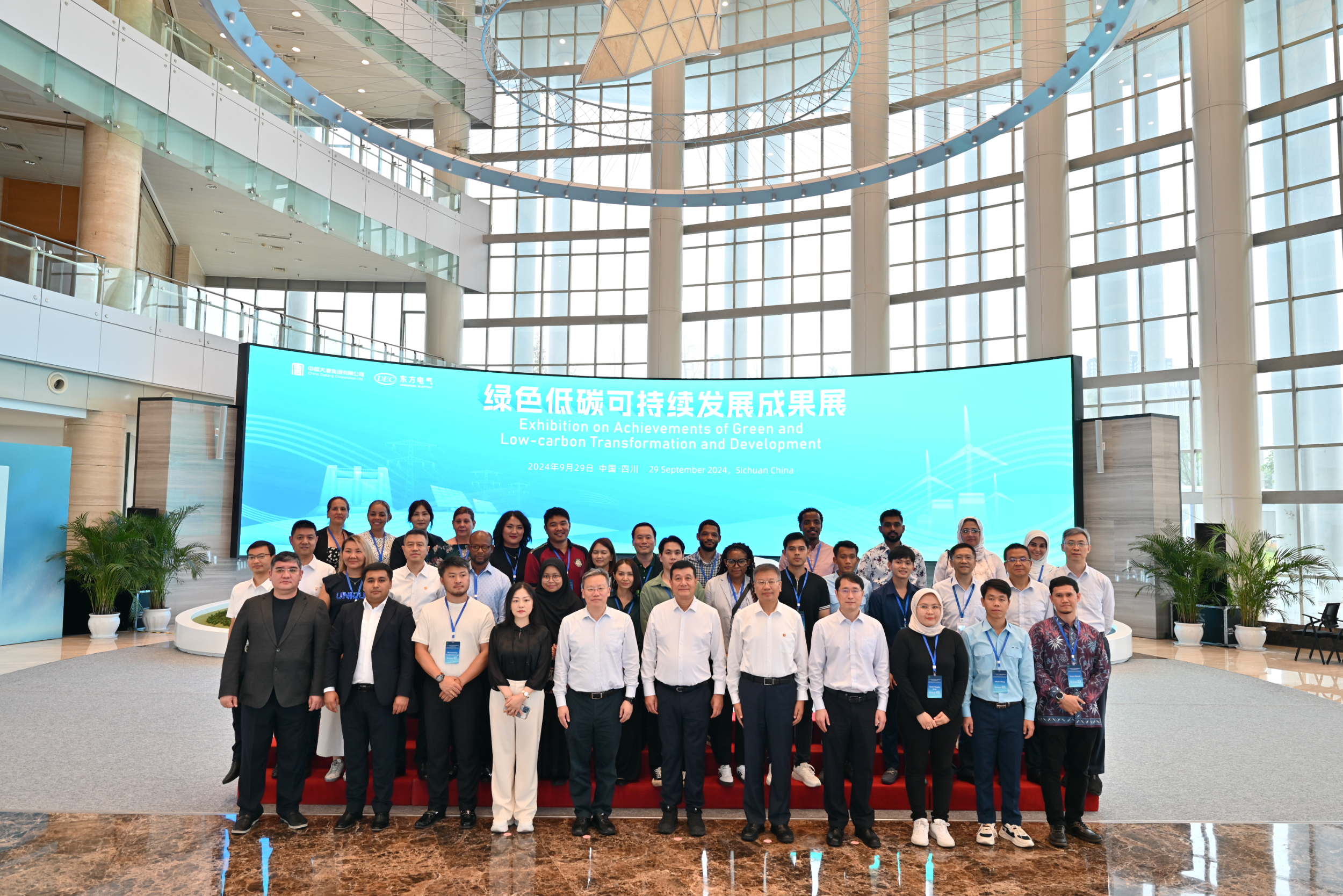 近日,由生態環境部主辦、中國大唐承辦的2024年應對氣候變化南南合作能力建設項目“綠色低碳可持續發展能力建設”研討班走進東方電氣,來自南非、埃及、泰國、馬來西亞、印度尼西亞、柬埔寨、老撾等14個國家的29名政府官員、專家學者和技術人員共同觀展交流,一同揭幕由中國大唐、東方電氣共同組織的“中國樣板:綠色低碳可持續發展成果展”。