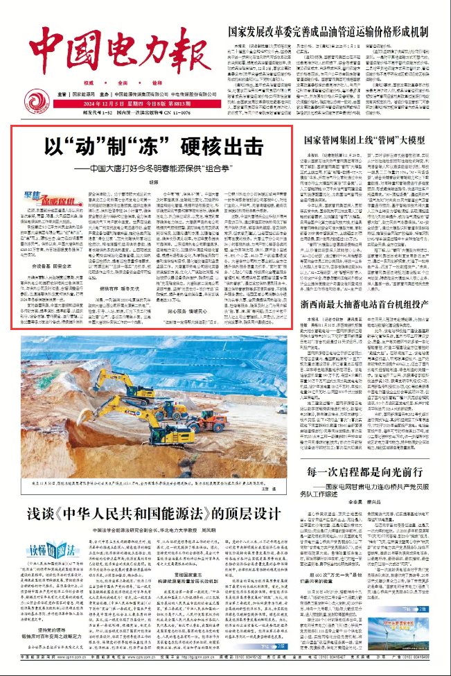 2024年12月5日中國電力報(bào)第8813期 第一版 頭版
