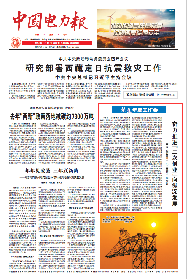 本報訊(記者 李東海 通訊員 伍鯤鵬 陳文學 劉占虎)1月8日,中國大唐集團有限公司在京召開 2025年工作會議,全面貫徹落實中央經濟工作會議和中央企業負責人會議部署要求,總結2024年工作,分析面臨形勢,安排部署2025年重點工作,動員系統廣大干部職工勇擔使命、真抓實干,踔厲奮發勇向前,推進“二次創業”向縱深發展,以實績實效為強國建設、民族復興作出新的更大貢獻。