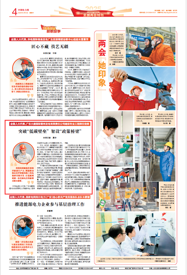 作為雷州發電綠色低碳創新工作室的牽頭人,任佳炯始終精益求精、勇挑重擔,在創新工作室突破“低碳壁壘”,在履職中架設“政策橋梁”。“創新的過程其實充滿了挑戰,在把握政策導向的前提下,需要充分且廣泛的調研,發動多方協作力量。過程中方案被一遍遍推敲和完善,最終探尋出一條適合自己的實施路徑。”艱辛的汗水終于澆出了碩果,“看到我們的成果能推動能源行業綠色低碳發展,一切都值得!”說到這里,她的眼角眉梢充滿了笑意。