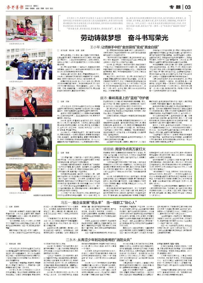 2025-5-6三版[各界導報]楊銀娟:用堅守點亮萬家燈火