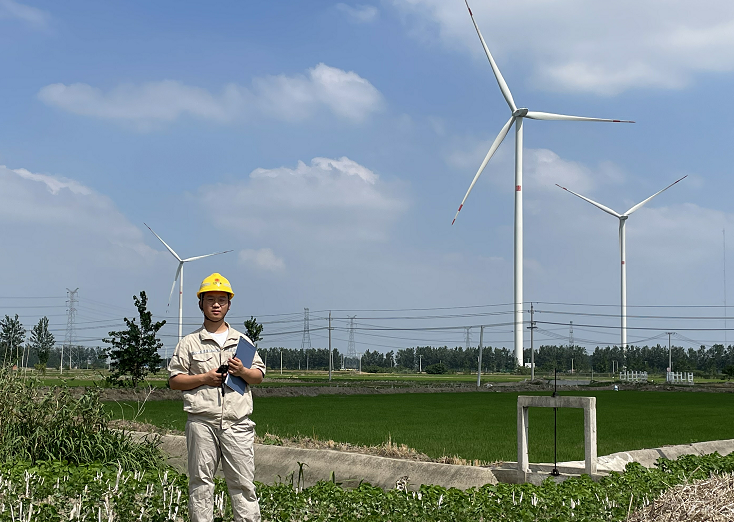 去年夏天,我離開(kāi)校園,走進(jìn)射陽(yáng)風(fēng)電場(chǎng),看三枚葉片在藍(lán)天與白云間緩慢而有力地?fù)]舞,腦海中突然閃過(guò)一句話:留下“綠水青山”,帶來(lái)“金山銀山”——是的,我成了一名電力人,從此不再是遠(yuǎn)觀風(fēng)車(chē)的游人。