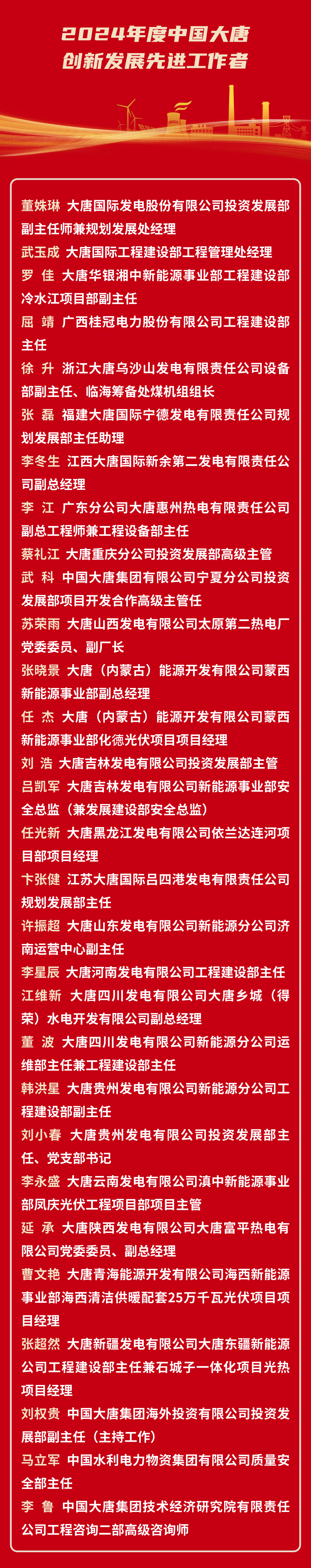 2024年度中國大唐集團有限公司創(chuàng)新發(fā)展先進工作者