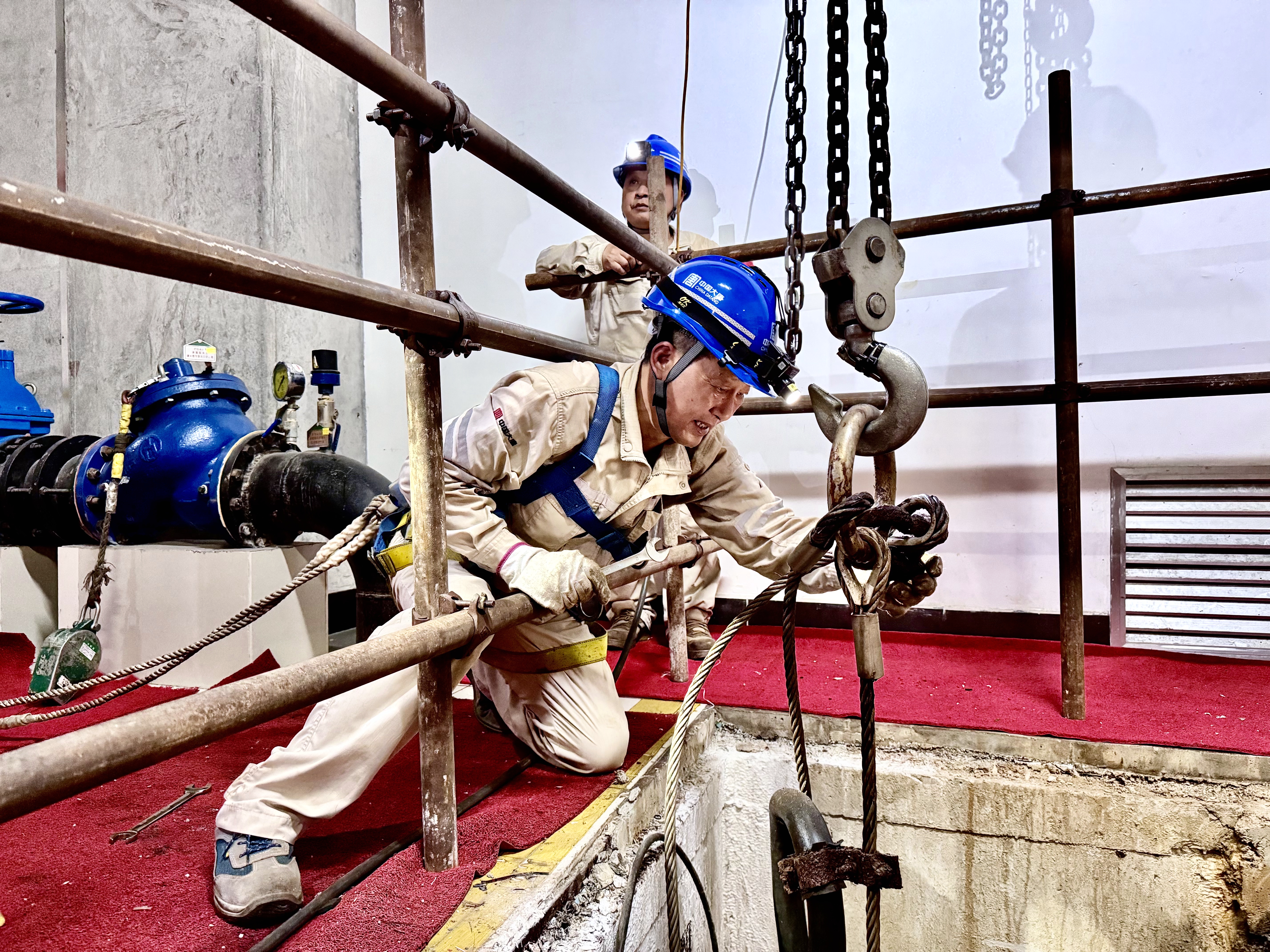 8月4日,彭水水電站廠房EL213.9層悶熱如倒扣的鐵皮蒸籠,悶熱的空氣仿佛凝固成膠水,黏在每一寸裸露的皮膚上。在重慶彭水水電公司5號機(jī)組滲漏集水井井口邊緣,七八頂安全帽在蒸騰的熱氣里微微晃動,仿佛幾片浮萍,在汗水匯成的河流中載沉載浮。