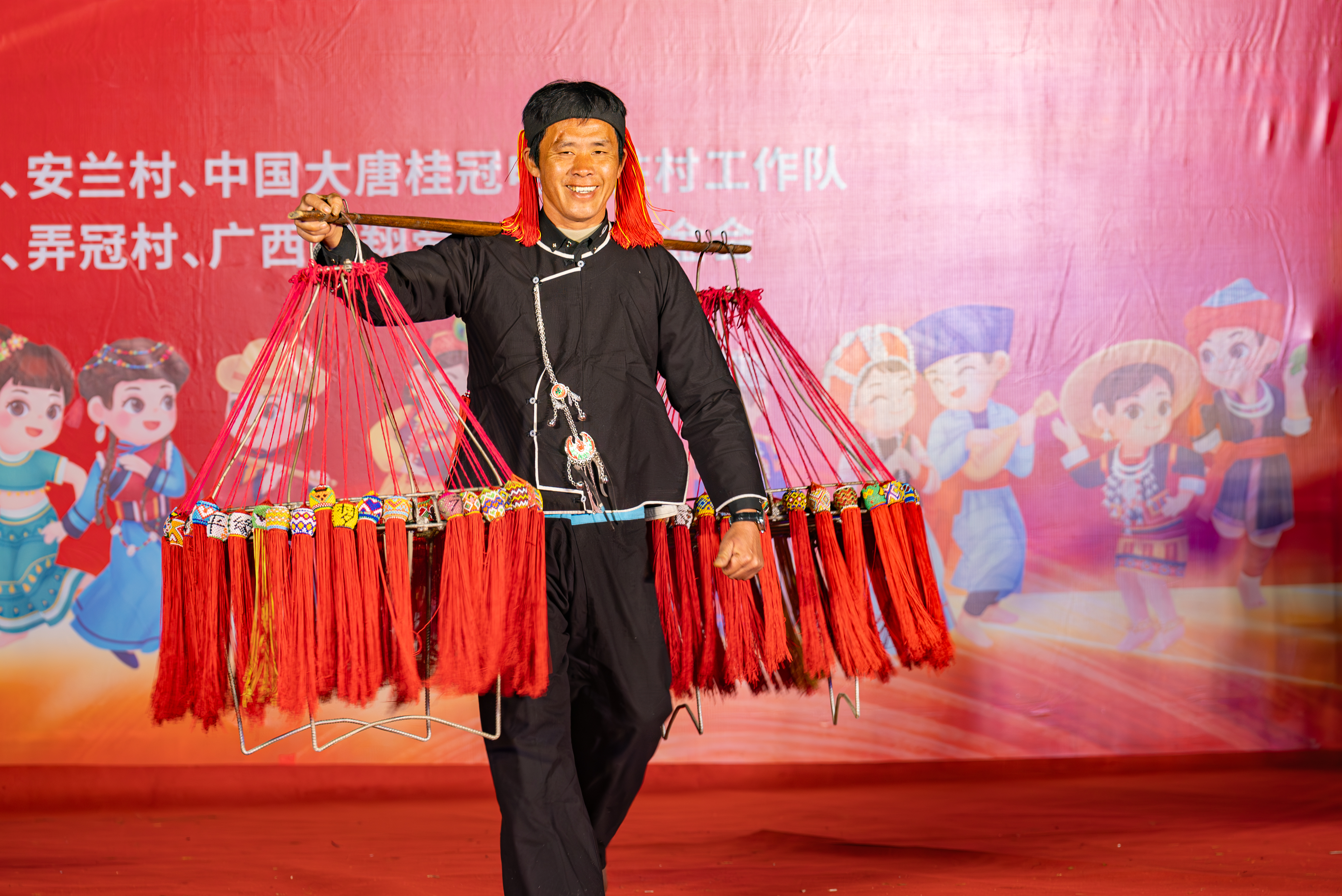 晚會高潮由板蘭村弄英屯的康凡老師與其他學生帶來。這位曾獲得夢想劇場冠軍、現任巴馬縣第五小學的音樂老師,用瑤話和普通話交織演繹《飛歌迎賓》《家鄉》《我要抱著你》等歌曲,那悠揚深沉的歌聲如山間百靈般,載著游子對故土的眷戀,溫暖了每一個人的心靈。
